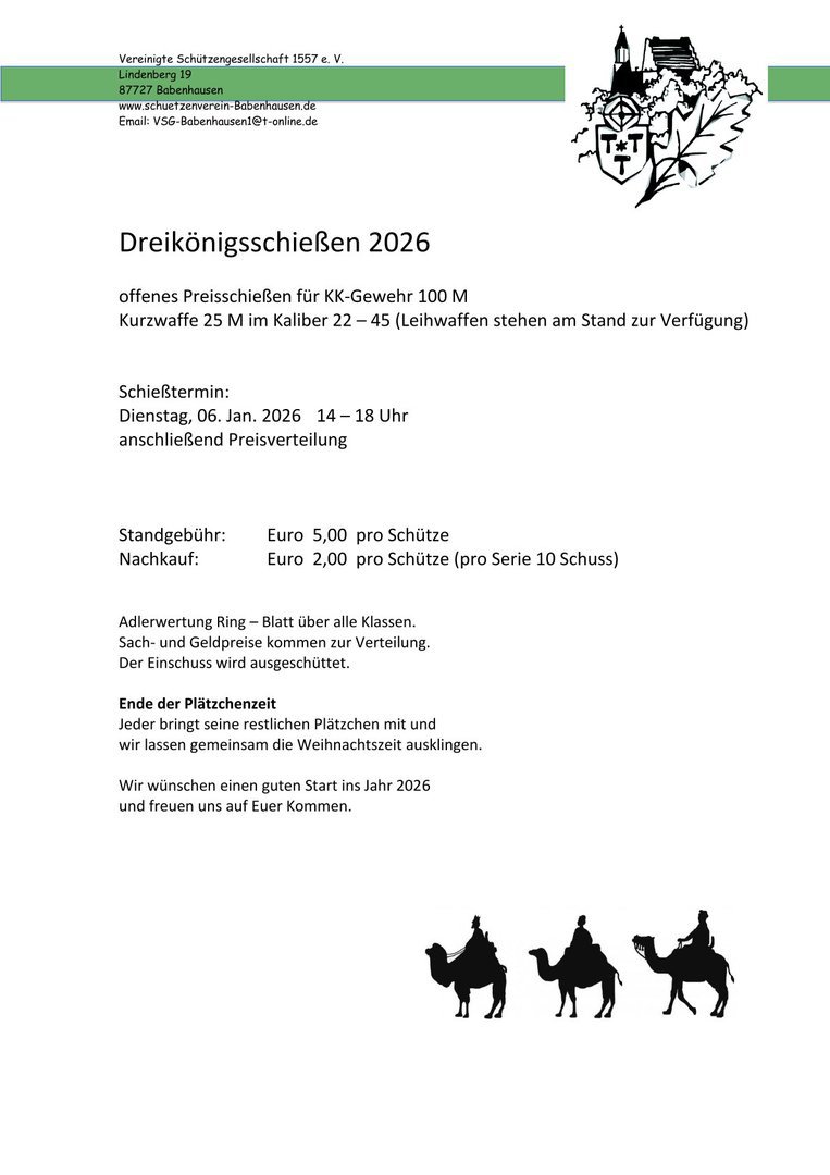 Schießzeiten: 9 - 11.45 Uhr