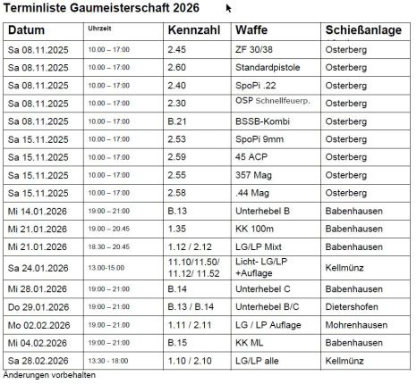 Schießtermine: